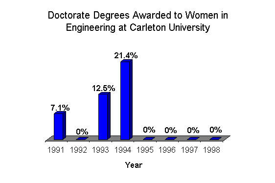 Doctorate Degrees in Engineering Awarded to Women Students by Carleton University, 1991-1998