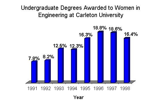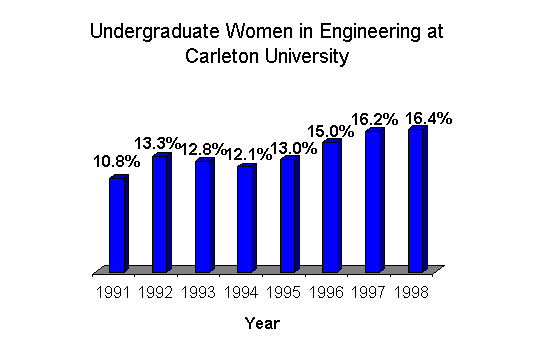 Undergraduate Enrollment of Women Students in Engineering at Carleton University, 1991-1998