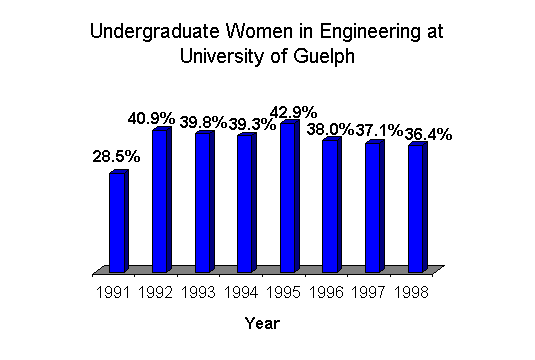 Undergraduate Enrollment of Women Students in Engineering at the University of Guelph, 1991-1998