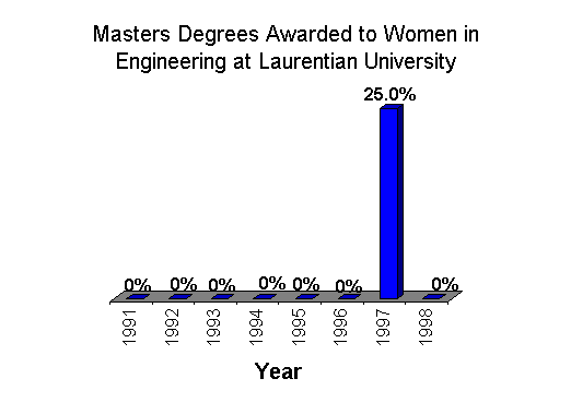 Masters Degrees in Engineering Awarded to Women Students by Laurentian University, 1991-1998