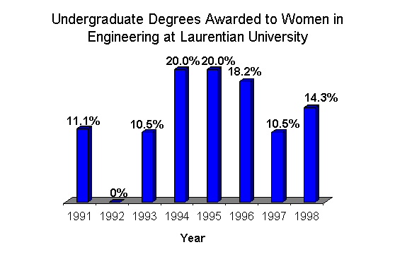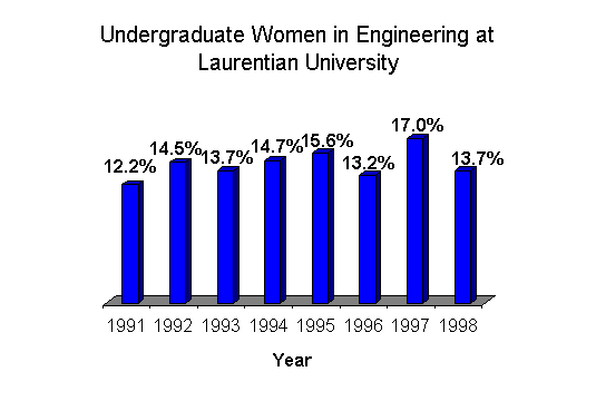 Undergraduate Enrollment of Women Students in Engineering at Laurentian University, 1991-1998