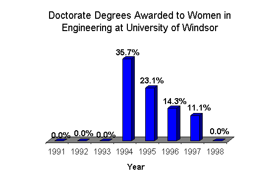 Doctorate Degrees in Engineering Awarded to Women Students by University of Windsor, 1991-1998