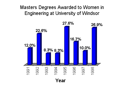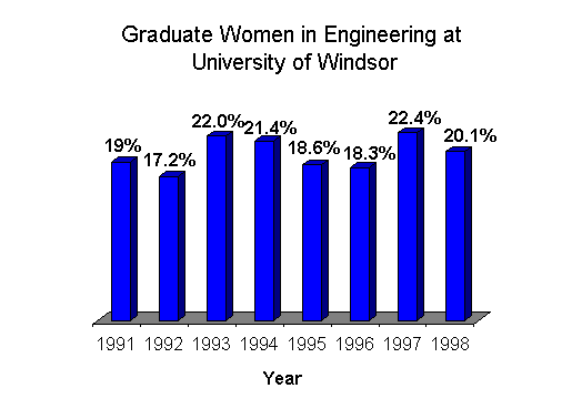 Graduate Women Student Enrollment in Engineering at University of Windsor, 1991-1998