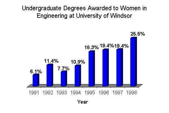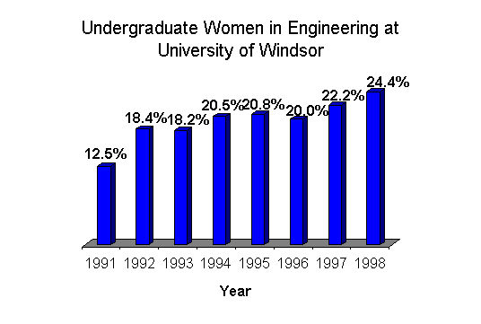 Undergraduate Enrollment of Women Students in Engineering at University of Windsor, 1991-1998